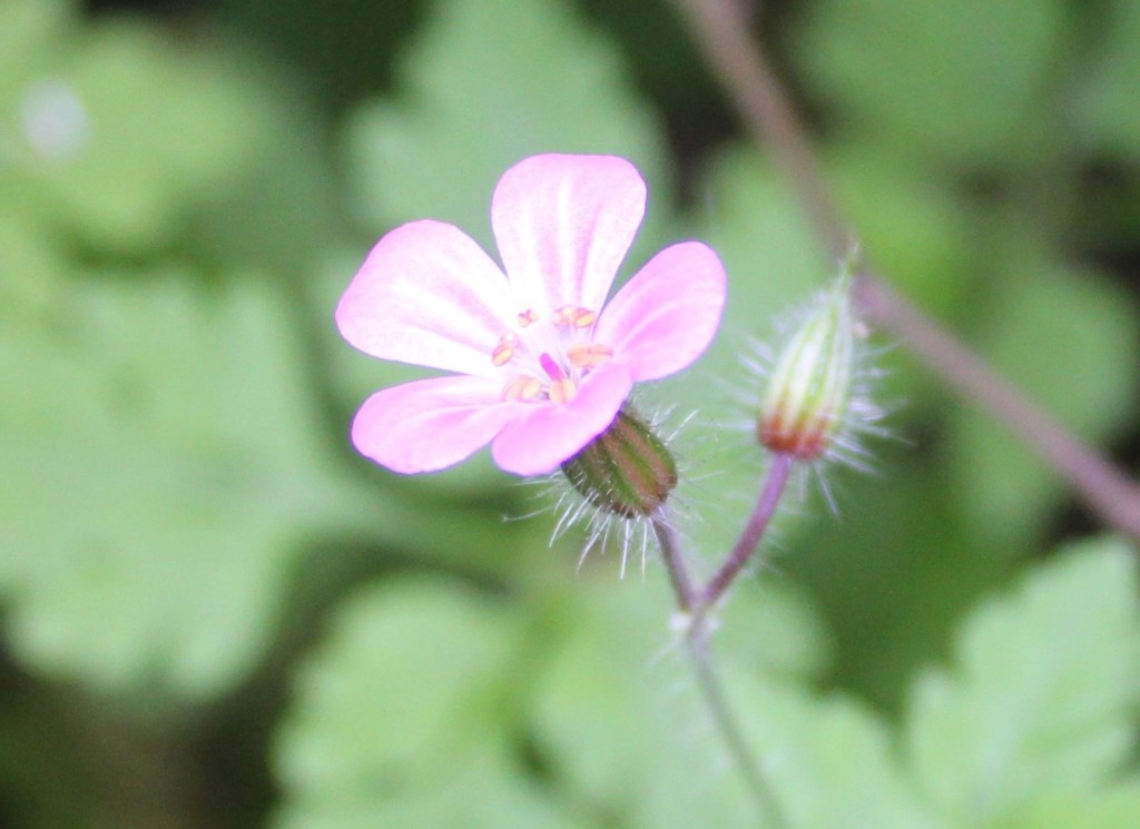 The world’s smallest ikebana trembles on a single stem. At the base, crimson maple leaves, stolen from an ant’s Canadian flag. Then, green lanterns hang like fairies’ lights. Finally, pink petals – the shade of my childhood room. “Look close,” Shining Cranesbill whispers“ and travel far with me”.